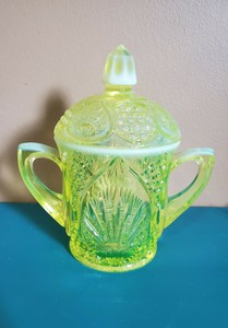 Related : Fenton Cactus Open Sugar Bowl Topaz Opalescent Vintage Vasoline Glass / Vintage fenton glass milk glass cactus open nut pedestal bowl 5 1/2 tall, cactus shallow compote or bon bon dish..